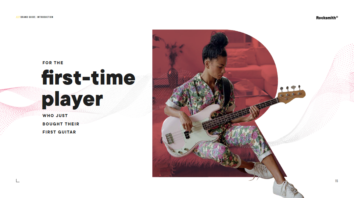 Ubisoft asked Nomadic to rebrand Rocksmith, one of the world’s most effective interactive guitar learning programs. After years of success on PC and game consoles, the brand was shifting to a subscription service to broaden its customer base. Rocksmith knew how to appeal to guys who want to rock but needed help attracting other types of players—a diverse community of aspiring guitarists who longed to be part of music culture. So, inspired by eclectic music references, Nomadic developed a voice and look that can be adapted to reflect any learner, across any genre. Sample pages from the brand guide are below.